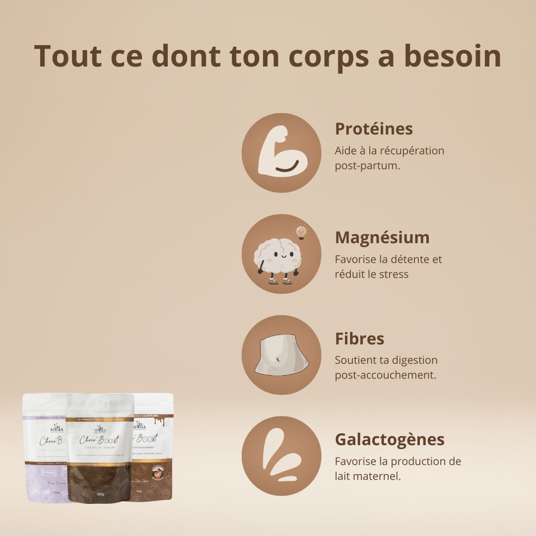 🤎 Bref, si tu veux prendre soin de ton allaitement tout en te faisant plaisir, le Pack Trio ChocoBoost est fait pour toi.